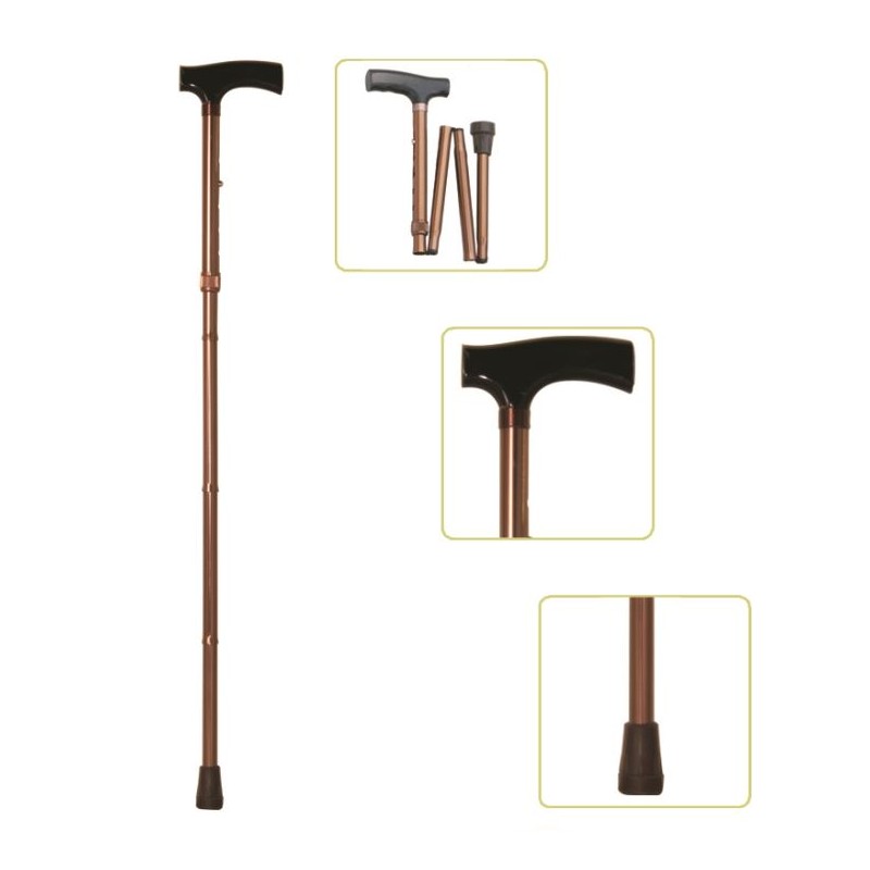 BASTON PLEGABLE ALUMINIO MANGO T BRONCE CON CORDON